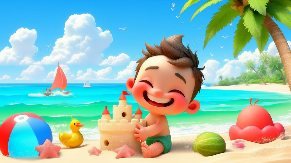 本作品内容为小男孩在沙滩上堆城堡卡通插画, 格式为 jpg, 大小5 MB, 图片尺寸为2912 x 1632, 源文件无水印, 欢迎使用熊猫办公。 如认为平台内容涉嫌侵权,可通过邮件:tousu@tukuppt.com提出书面通知,我们将及时处理。