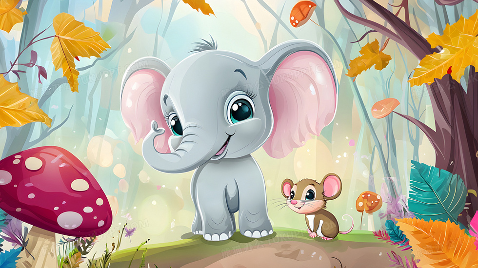 本作品内容为卡通风格森林小动物小象插画, 格式为 jpg, 大小3 MB, 图片尺寸为2912 x 1632, 源文件无水印, 欢迎使用熊猫办公。 如认为平台内容涉嫌侵权,可通过邮件:tousu@tukuppt.com提出书面通知,我们将及时处理。
