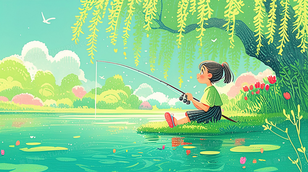 首页 > 插画 > 科技艺术 > 水彩手绘 > 春天春季女孩河边钓鱼插画