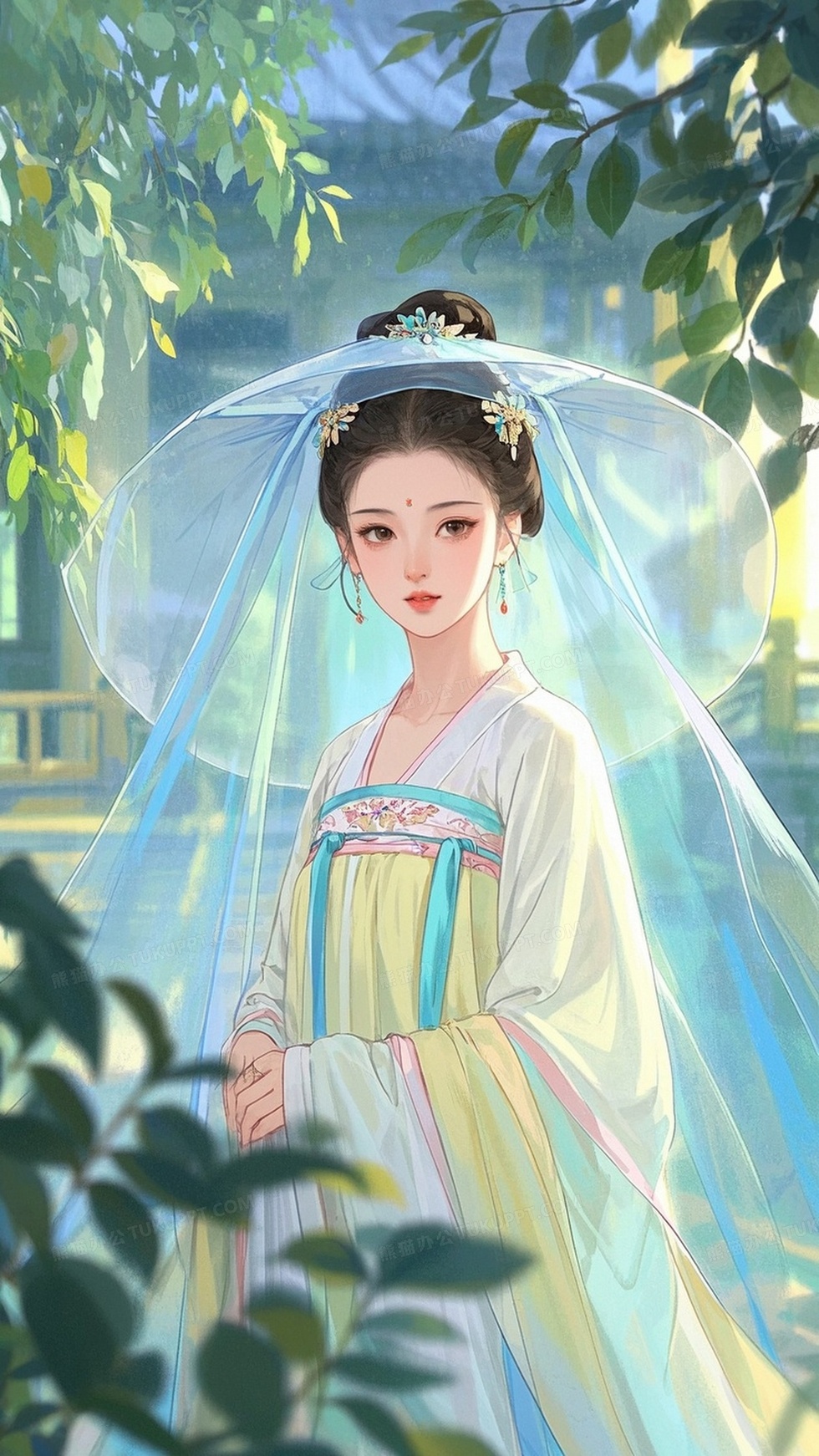 首页 > 插画 > 科技艺术 > 水彩手绘 > 手绘插画风格一位名叫亦菲的女孩身着淡白色薄纱唐装