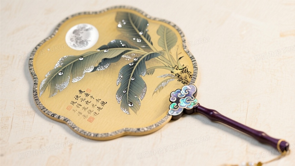 本作品内容为月下芭蕉团扇工笔画银箔点缀露珠折射月光, 格式为 jpg, 大小1 MB, 图片尺寸为1664 x 936, 源文件无水印, 欢迎使用熊猫办公。 如认为平台内容涉嫌侵权,可通过邮件:tousu@tukuppt.com提出书面通知,我们将及时处理。