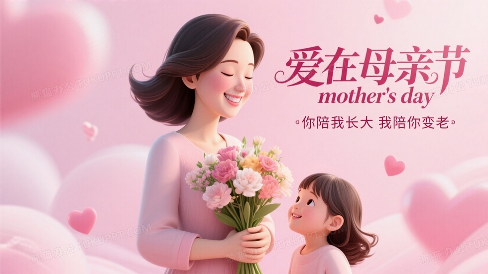 本作品内容为主标题爱在母亲节副标题, 格式为 jpg, 大小1 MB, 图片尺寸为1664 x 936, 源文件无水印, 欢迎使用熊猫办公。 如认为平台内容涉嫌侵权,可通过邮件:tousu@tukuppt.com提出书面通知,我们将及时处理。