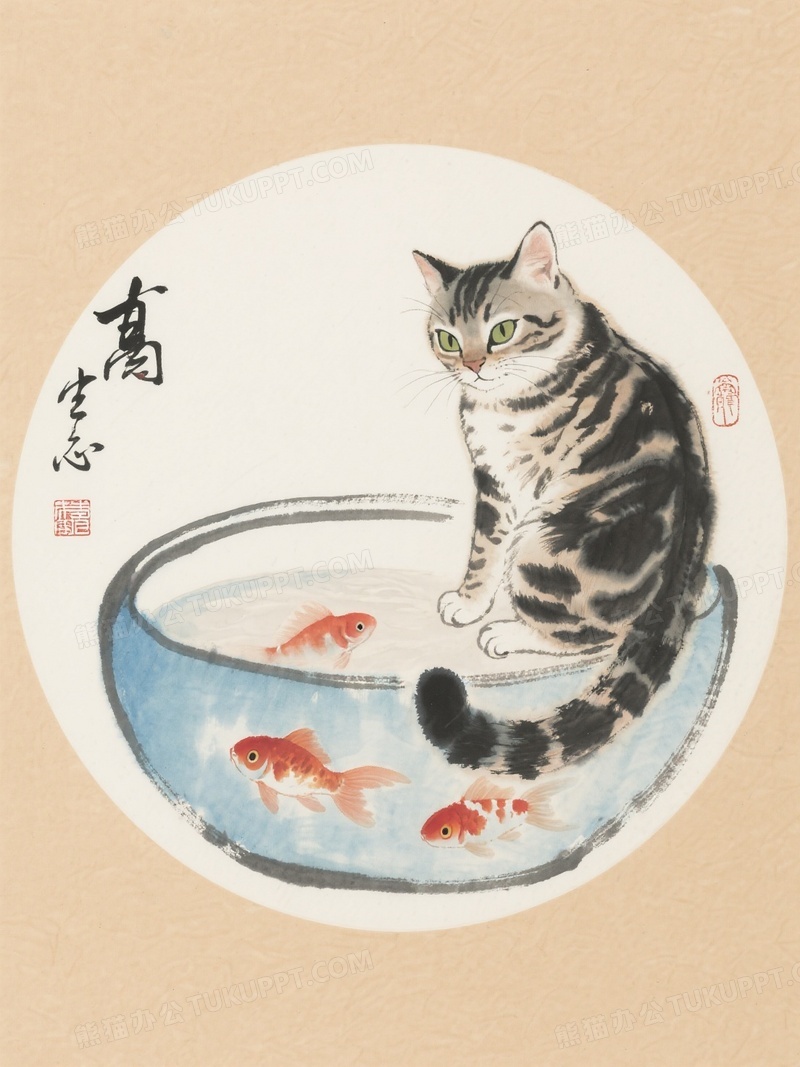 本作品内容为狸花猫金鱼缸圆形国画, 格式为 jpg, 大小1 MB, 图片尺寸为1104 x 1472, 源文件无水印, 欢迎使用熊猫办公。 如认为平台内容涉嫌侵权,可通过邮件:tousu@tukuppt.com提出书面通知,我们将及时处理。