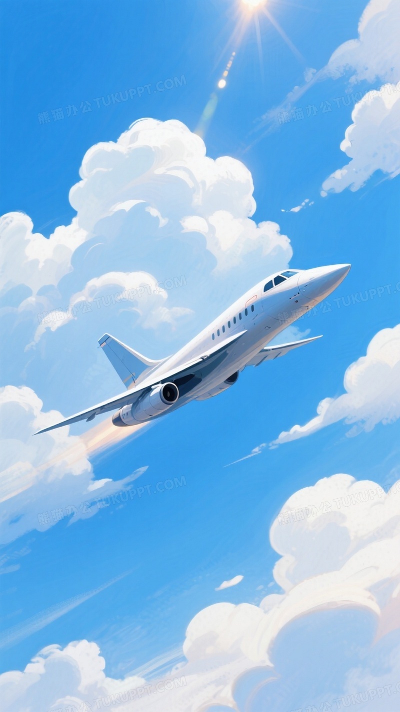 本作品内容为好看的飞机插画一架流线型的喷气式飞机在蓝天中飞行, 格式为 jpg, 大小1 MB, 图片尺寸为936 x 1664, 源文件无水印, 欢迎使用熊猫办公。 如认为平台内容涉嫌侵权,可通过邮件:tousu@tukuppt.com提出书面通知,我们将及时处理。