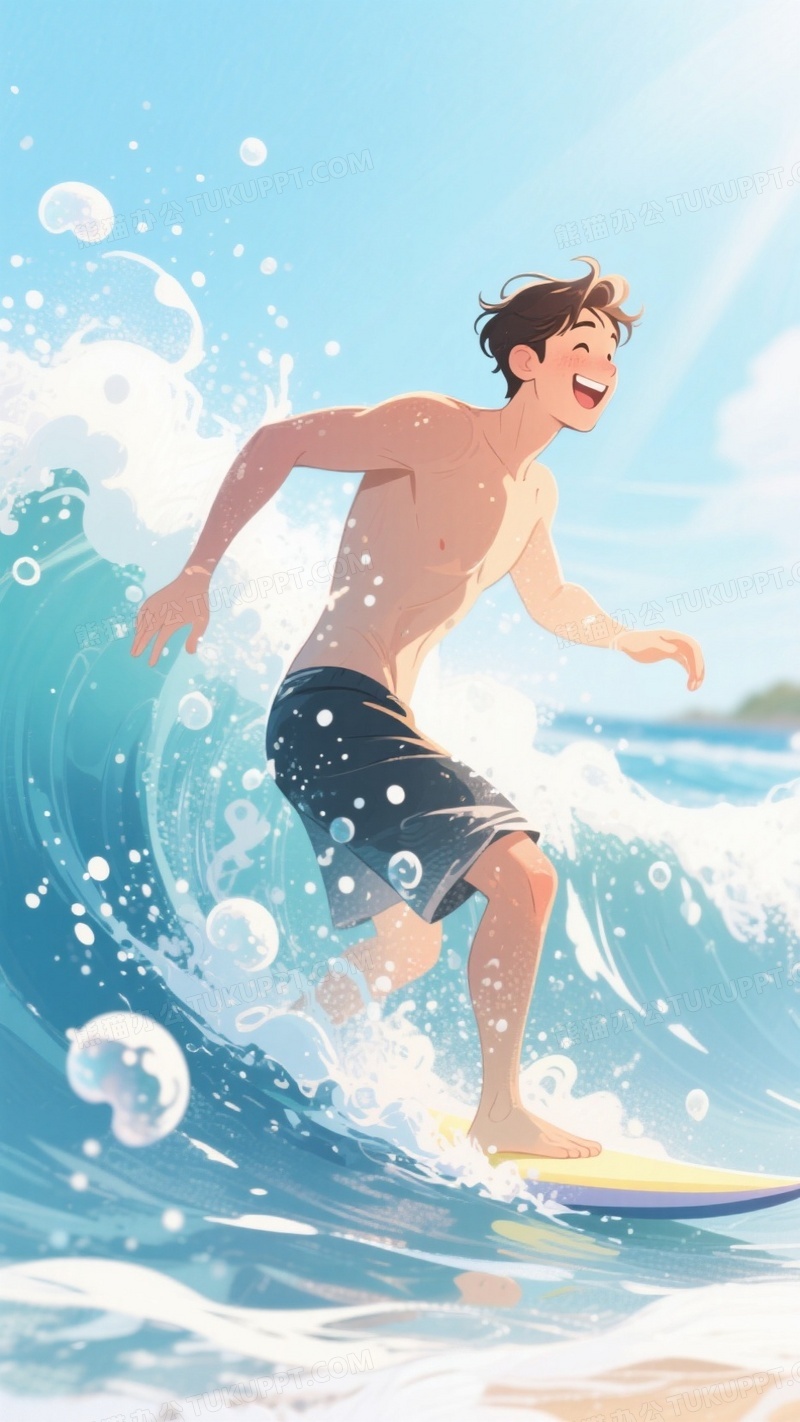 本作品内容为插画形式呈现夏天冲浪, 格式为 jpg, 大小1 MB, 图片尺寸为936 x 1664, 源文件无水印, 欢迎使用熊猫办公。 如认为平台内容涉嫌侵权,可通过邮件:tousu@tukuppt.com提出书面通知,我们将及时处理。