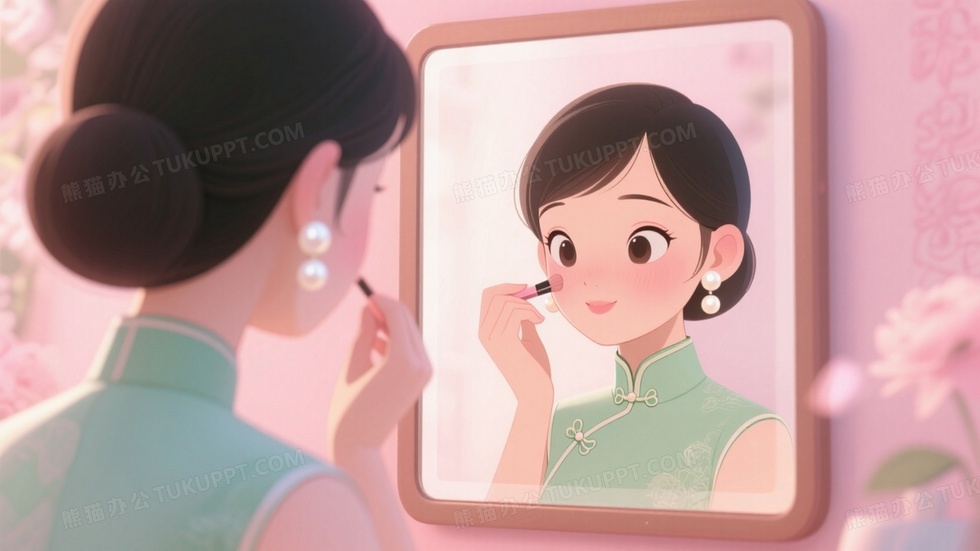 本作品内容为好看的高清卡通插画描绘女孩在方形镜子前化妆, 格式为 jpg, 大小1 MB, 图片尺寸为1664 x 936, 源文件无水印, 欢迎使用熊猫办公。 如认为平台内容涉嫌侵权,可通过邮件:tousu@tukuppt.com提出书面通知,我们将及时处理。