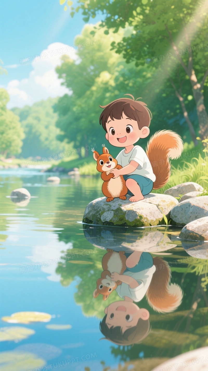 本作品内容为夏日卡通插画可爱的小孩抱着一只小松鼠在河边的石头上, 格式为 jpg, 大小1 MB, 图片尺寸为936 x 1664, 源文件无水印, 欢迎使用熊猫办公。 如认为平台内容涉嫌侵权,可通过邮件:tousu@tukuppt.com提出书面通知,我们将及时处理。