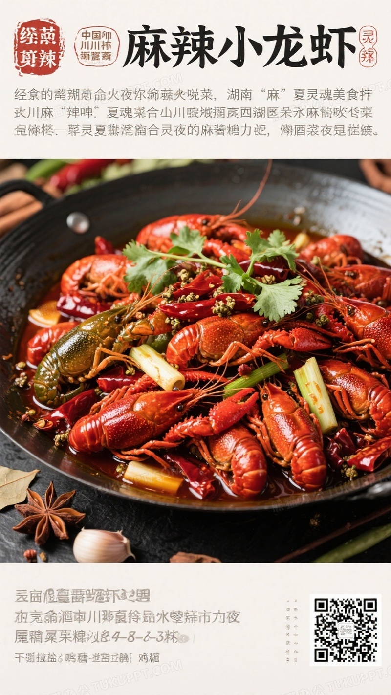 本作品内容为麻辣小龙虾是一道源自中国川湘地区的经典美食, 格式为 jpg, 大小1 MB, 图片尺寸为936 x 1664, 源文件无水印, 欢迎使用熊猫办公。 如认为平台内容涉嫌侵权,可通过邮件:tousu@tukuppt.com提出书面通知,我们将及时处理。