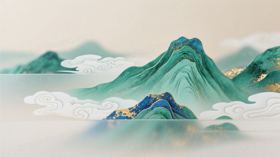 本作品内容为青绿山水主题图山脉是高饱和度色彩, 格式为 jpg, 大小1 MB, 图片尺寸为1664 x 936, 作品中背景图片无需修改, 源文件无水印,可以直接使用, 欢迎使用熊猫办公。 如认为平台内容涉嫌侵权,可通过邮件:tousu@tukuppt.com提出书面通知,我们将及时处理。