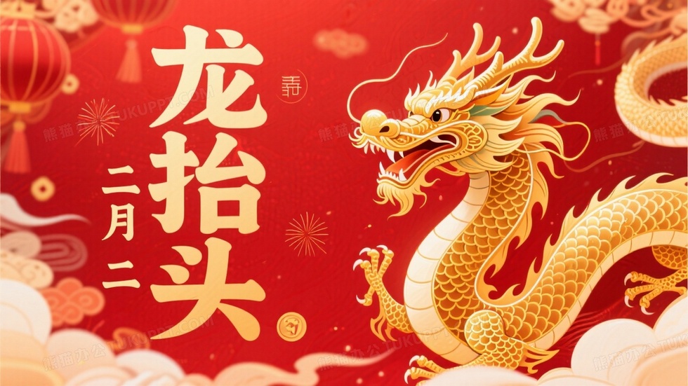 本作品内容为春节二月二龙抬头主题插画, 格式为 jpg, 大小1 MB, 图片尺寸为1664 x 936, 源文件无水印, 欢迎使用熊猫办公。 如认为平台内容涉嫌侵权,可通过邮件:tousu@tukuppt.com提出书面通知,我们将及时处理。