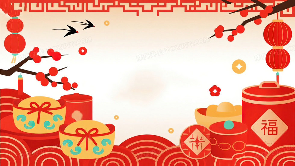 本作品内容为可爱卡通新年喜庆背景, 格式为 jpg, 大小5 MB, 图片尺寸为3328 x 1872, 作品中背景图片无需修改, 源文件无水印,可以直接使用, 欢迎使用熊猫办公。 如认为平台内容涉嫌侵权,可通过邮件:tousu@tukuppt.com提出书面通知,我们将及时处理。