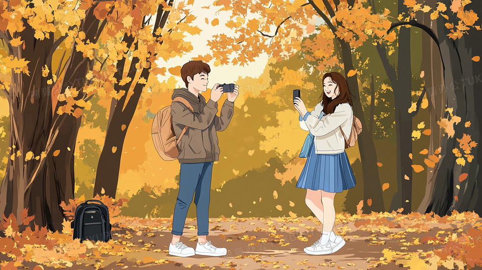 本作品内容为秋天情侣拍照片拍摄摄影插画, 格式为 jpg, 大小3 MB, 图片尺寸为2912 x 1632, 源文件无水印, 欢迎使用熊猫办公。 如认为平台内容涉嫌侵权,可通过邮件:tousu@tukuppt.com提出书面通知,我们将及时处理。
