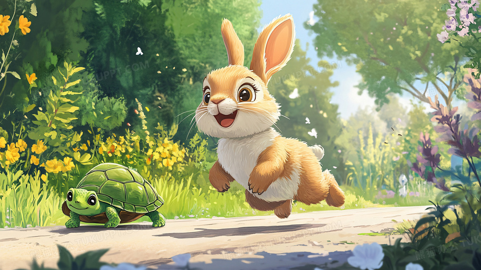 本作品内容为成语故事龟兔赛跑插画, 格式为 jpg, 大小7 MB, 图片尺寸为2912 x 1632, 源文件无水印, 欢迎使用熊猫办公。 如认为平台内容涉嫌侵权,可通过邮件:tousu@tukuppt.com提出书面通知,我们将及时处理。