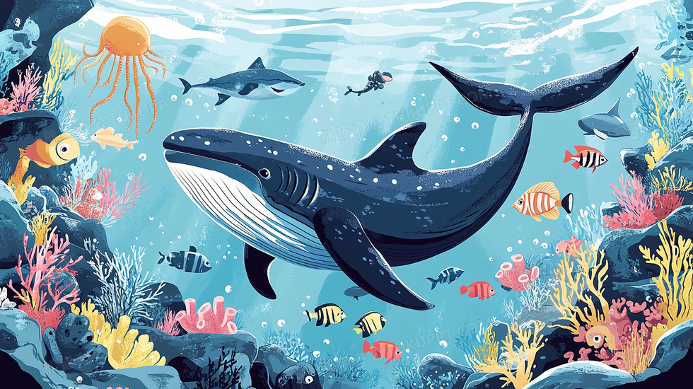 本作品内容为鲨鱼海洋海底世界珊瑚鱼插画, 格式为 jpg, 大小4 MB, 图片尺寸为2912 x 1632, 源文件无水印, 欢迎使用熊猫办公。 如认为平台内容涉嫌侵权,可通过邮件:tousu@tukuppt.com提出书面通知,我们将及时处理。