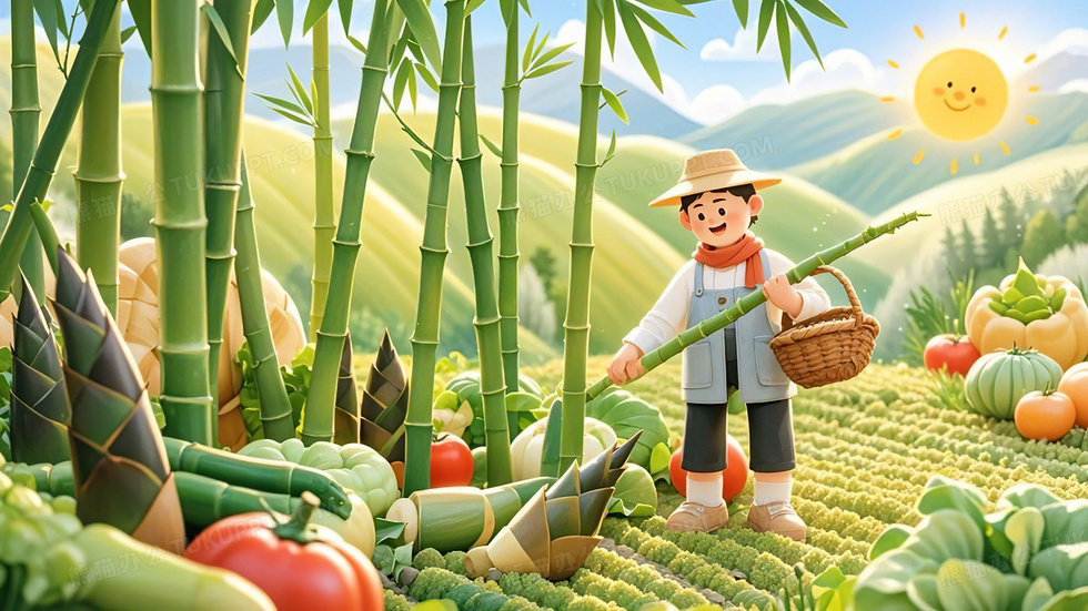 本作品内容为春笋竹林农村生活农产品插画, 格式为 jpg, 大小4 MB, 图片尺寸为3072 x 1728, 源文件无水印, 欢迎使用熊猫办公。 如认为平台内容涉嫌侵权,可通过邮件:tousu@tukuppt.com提出书面通知,我们将及时处理。