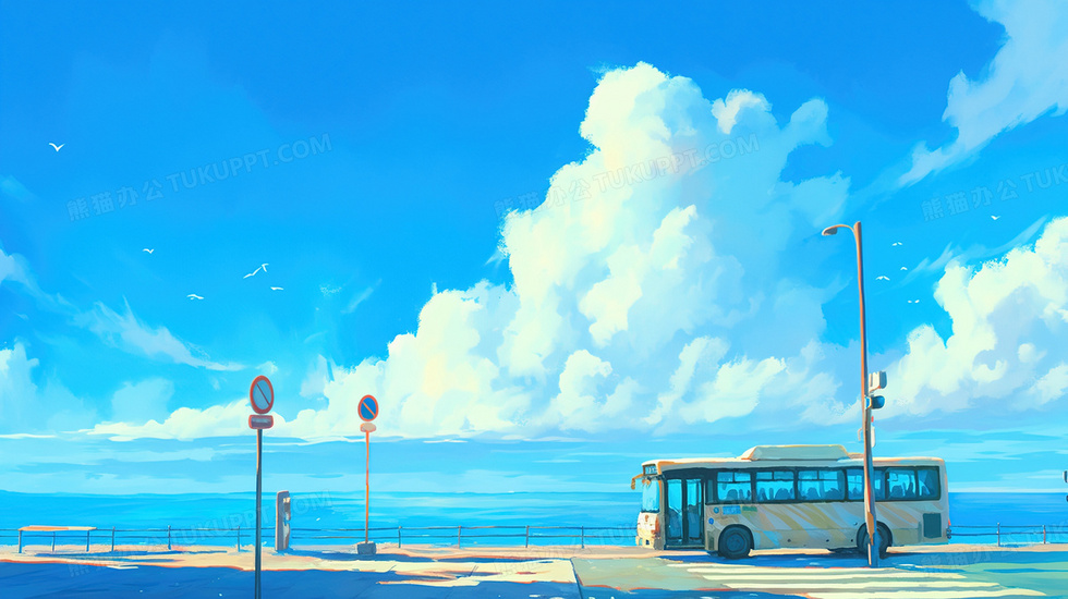 本作品内容为蔚蓝天空海边道路上行驶汽车插画, 格式为 jpg, 大小3 MB, 图片尺寸为2912 x 1632, 源文件无水印, 欢迎使用熊猫办公。 如认为平台内容涉嫌侵权,可通过邮件:tousu@tukuppt.com提出书面通知,我们将及时处理。