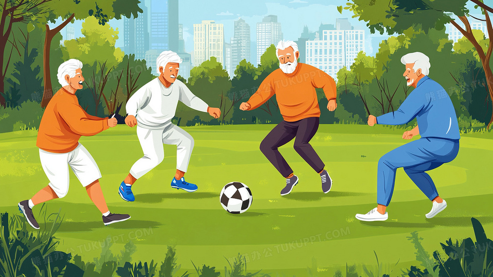 本作品内容为老爷爷公园踢足球早起锻炼晨练健康生活插画, 格式为 jpg, 大小3 MB, 图片尺寸为2912 x 1632, 源文件无水印, 欢迎使用熊猫办公。 如认为平台内容涉嫌侵权,可通过邮件:tousu@tukuppt.com提出书面通知,我们将及时处理。