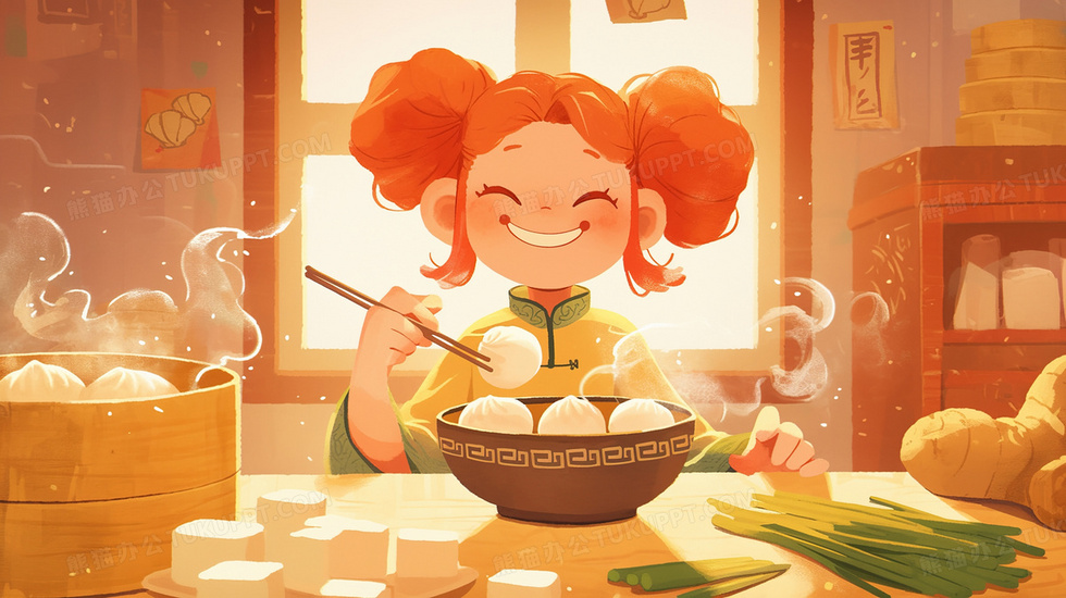 本作品内容为女孩早餐吃美食包子卡通插画, 格式为 jpg, 大小3 MB, 图片尺寸为2912 x 1632, 源文件无水印, 欢迎使用熊猫办公。 如认为平台内容涉嫌侵权,可通过邮件:tousu@tukuppt.com提出书面通知,我们将及时处理。