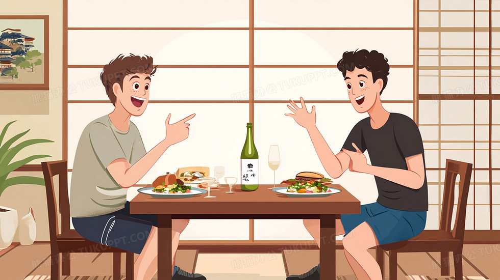 本作品内容为双人吃饭聊天插画, 格式为 jpg, 大小1 MB, 图片尺寸为2912 x 1632, 源文件无水印, 欢迎使用熊猫办公。 如认为平台内容涉嫌侵权,可通过邮件:tousu@tukuppt.com提出书面通知,我们将及时处理。