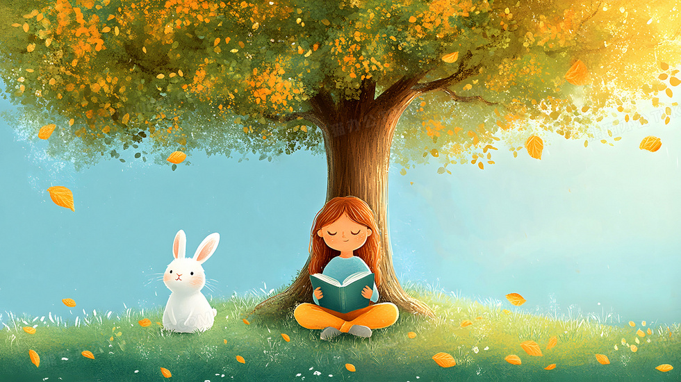 本作品内容为插画风格春季大树下读书的少女与小兔子, 格式为 jpg, 大小4 MB, 图片尺寸为2912 x 1632, 源文件无水印, 欢迎使用熊猫办公。 如认为平台内容涉嫌侵权,可通过邮件:tousu@tukuppt.com提出书面通知,我们将及时处理。