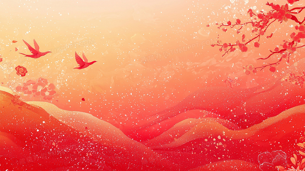 本作品内容为红金色水波纹线条梅花背景, 格式为 jpg, 大小4 MB, 图片尺寸为2912 x 1632, 作品中背景图片无需修改, 源文件无水印,可以直接使用, 欢迎使用熊猫办公。 如认为平台内容涉嫌侵权,可通过邮件:tousu@tukuppt.com提出书面通知,我们将及时处理。