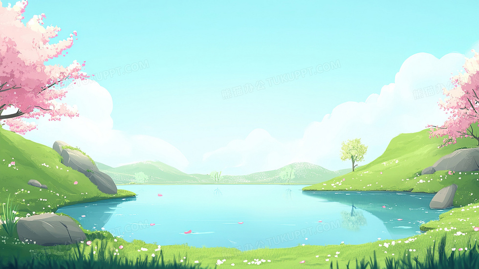 本作品内容为卡通风春天河流草地背景, 格式为 jpg, 大小3 MB, 图片尺寸为2912 x 1632, 作品中背景图片无需修改, 源文件无水印,可以直接使用, 欢迎使用熊猫办公。 如认为平台内容涉嫌侵权,可通过邮件:tousu@tukuppt.com提出书面通知,我们将及时处理。