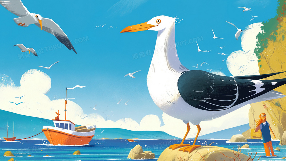 本作品内容为唯美蓝天白云海鸥大海帆船插画, 格式为 jpg, 大小3 MB, 图片尺寸为2912 x 1632, 源文件无水印, 欢迎使用熊猫办公。 如认为平台内容涉嫌侵权,可通过邮件:tousu@tukuppt.com提出书面通知,我们将及时处理。