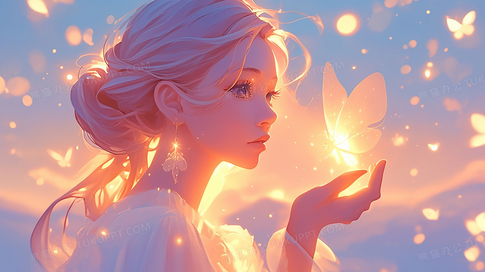 本作品内容为漂亮少女手掌心发光蝴蝶卡通插画, 格式为 jpg, 大小2 MB, 图片尺寸为2912 x 1632, 源文件无水印, 欢迎使用熊猫办公。 如认为平台内容涉嫌侵权,可通过邮件:tousu@tukuppt.com提出书面通知,我们将及时处理。