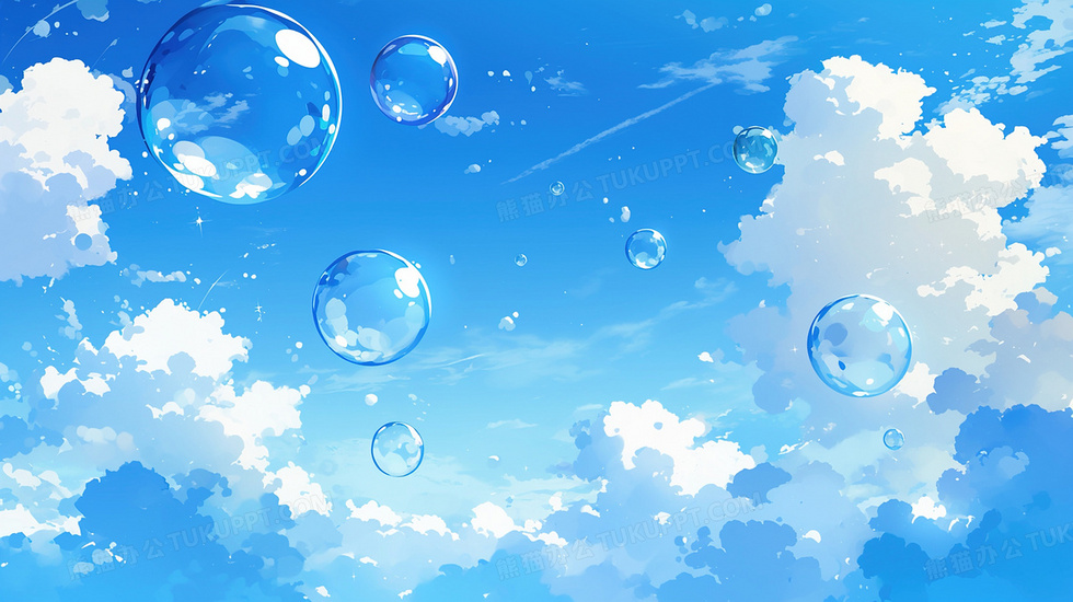 本作品内容为小清新治愈蔚蓝天空云层山水气泡插画, 格式为 jpg, 大小2 MB, 图片尺寸为2912 x 1632, 源文件无水印, 欢迎使用熊猫办公。 如认为平台内容涉嫌侵权,可通过邮件:tousu@tukuppt.com提出书面通知,我们将及时处理。
