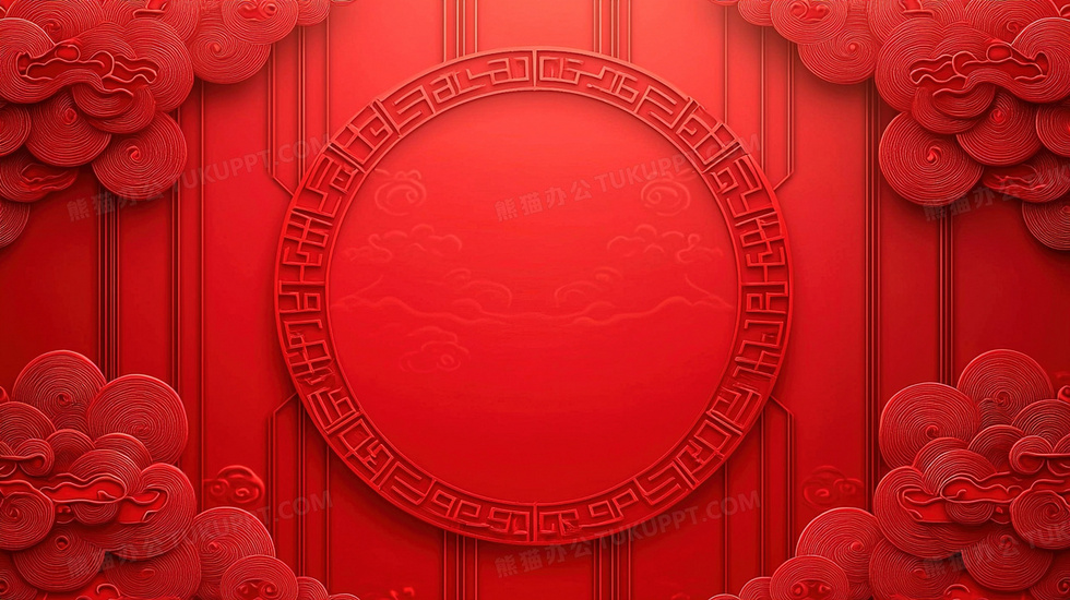 本作品内容为中式复古圆形装饰祥云背景, 格式为 jpg, 大小3 MB, 图片尺寸为2912 x 1632, 作品中背景图片无需修改, 源文件无水印,可以直接使用, 欢迎使用熊猫办公。 如认为平台内容涉嫌侵权,可通过邮件:tousu@tukuppt.com提出书面通知,我们将及时处理。