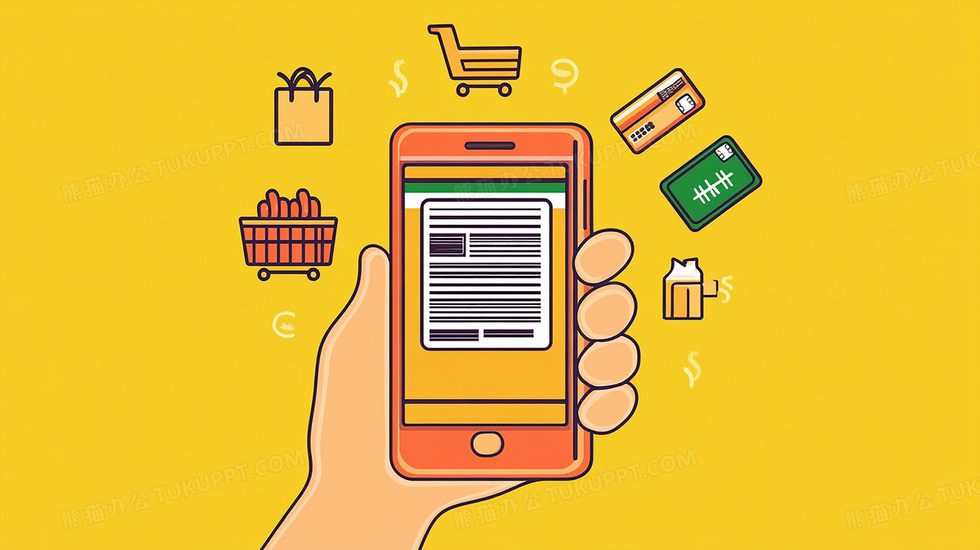 本作品内容为手机app线上购物插画, 格式为 jpg, 大小1 MB, 图片尺寸为2912 x 1632, 源文件无水印, 欢迎使用熊猫办公。 如认为平台内容涉嫌侵权,可通过邮件:tousu@tukuppt.com提出书面通知,我们将及时处理。