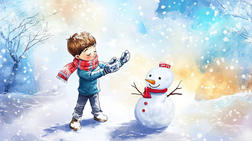 首页 > 插画 > 科技艺术 > 水彩手绘 > 冬天冬季穿着厚重衣服户外玩耍堆雪人卡通人物插画