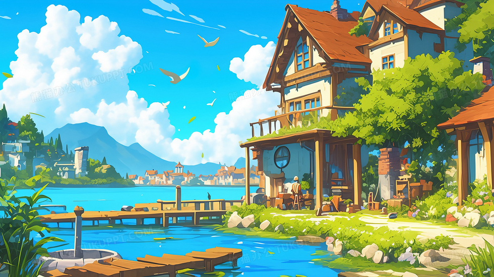 本作品内容为蓝天白云沿海建筑飞鸟景色插画, 格式为 jpg, 大小3 MB, 图片尺寸为2912 x 1632, 源文件无水印, 欢迎使用熊猫办公。 如认为平台内容涉嫌侵权,可通过邮件:tousu@tukuppt.com提出书面通知,我们将及时处理。
