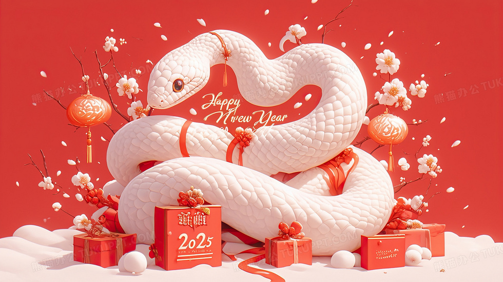 本作品内容为2025蛇年新年礼物插画, 格式为 jpg, 大小3 MB, 图片尺寸为2912 x 1632, 源文件无水印, 欢迎使用熊猫办公。 如认为平台内容涉嫌侵权,可通过邮件:tousu@tukuppt.com提出书面通知,我们将及时处理。