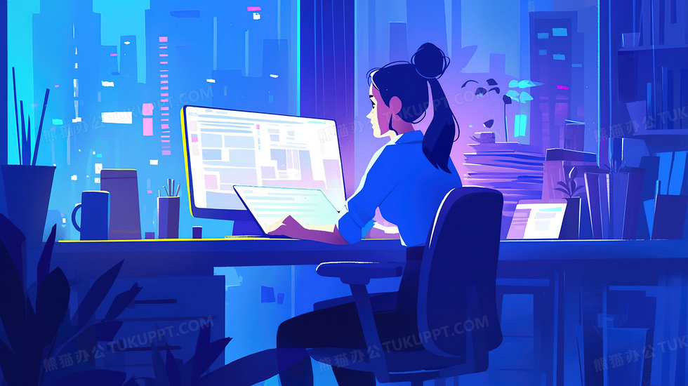 本作品内容为熬夜加班工作的打工人插画, 格式为 jpg, 大小3 MB, 图片尺寸为2912 x 1632, 源文件无水印, 欢迎使用熊猫办公。 如认为平台内容涉嫌侵权,可通过邮件:tousu@tukuppt.com提出书面通知,我们将及时处理。