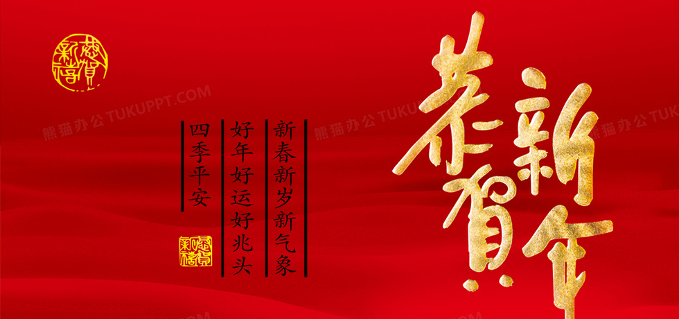 本作品内容为恭贺新禧红色背景, 格式为 psd, 图片尺寸为1920 x 900, 作品中背景图片无需修改, 源文件无水印,可以直接使用, 欢迎使用熊猫办公。 如认为平台内容涉嫌侵权,可通过邮件:tousu@tukuppt.com提出书面通知,我们将及时处理。