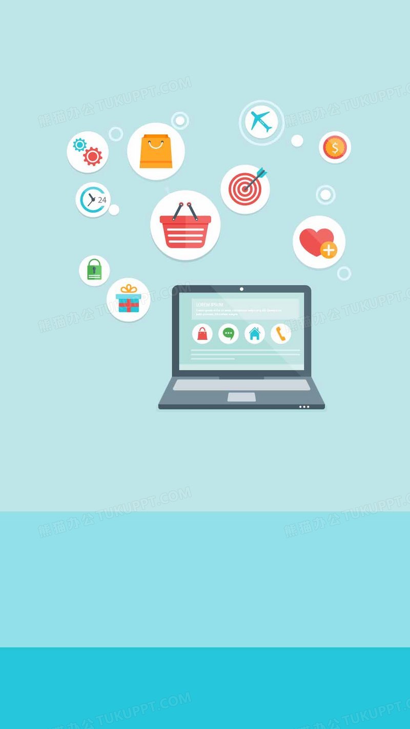 本作品内容为笔记本电脑在线购物和小图标扁平化H5, 格式为 psd, 图片尺寸为1080 x 1920, 作品中背景图片无需修改, 源文件无水印,可以直接使用, 欢迎使用熊猫办公。 如认为平台内容涉嫌侵权,可通过邮件:tousu@tukuppt.com提出书面通知,我们将及时处理。