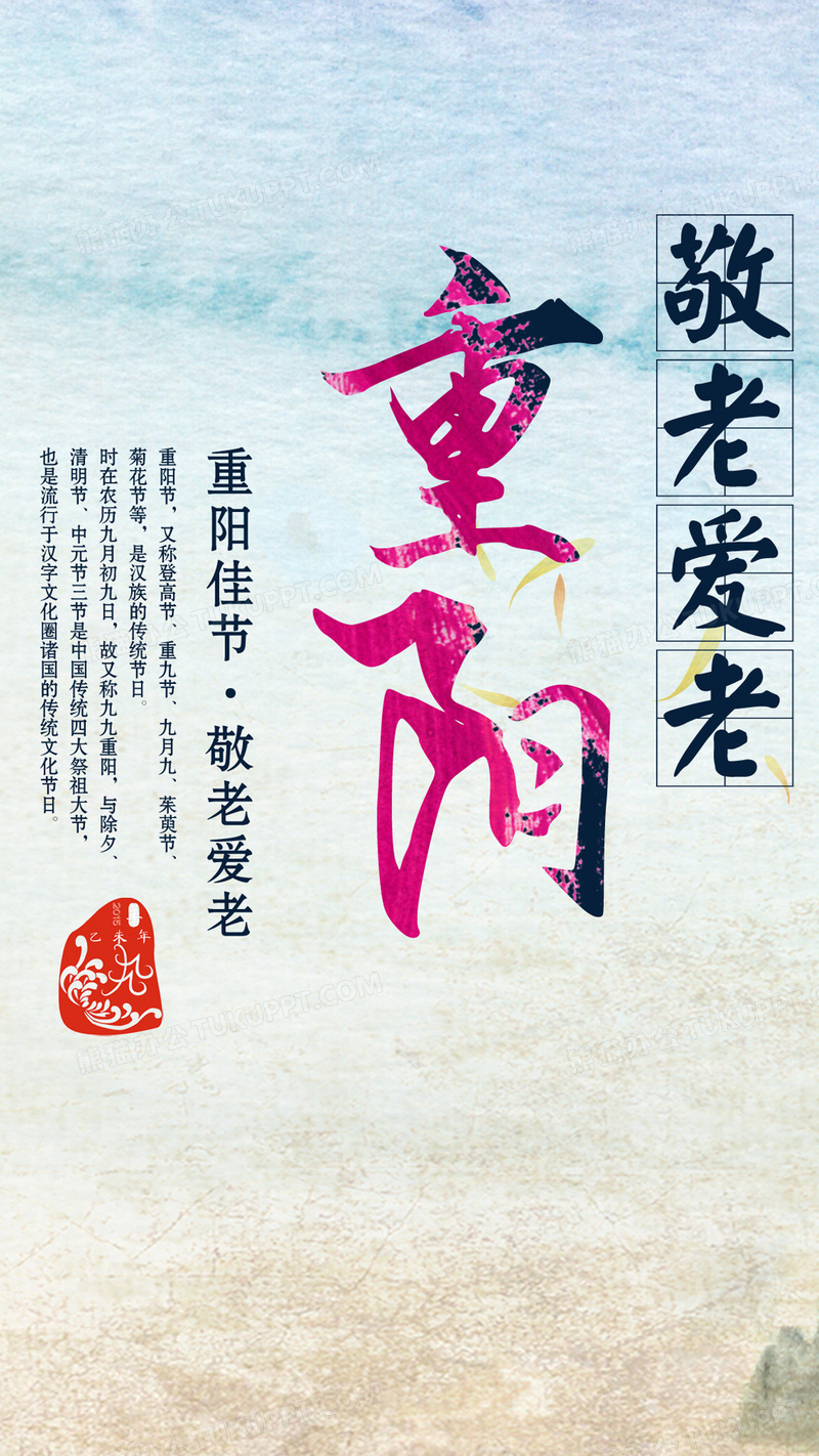 本作品内容为重阳H5背景, 格式为 jpg, 图片尺寸为1080 x 1920, 作品中背景图片无需修改, 源文件无水印,可以直接使用, 欢迎使用熊猫办公。 如认为平台内容涉嫌侵权,可通过邮件:tousu@tukuppt.com提出书面通知,我们将及时处理。