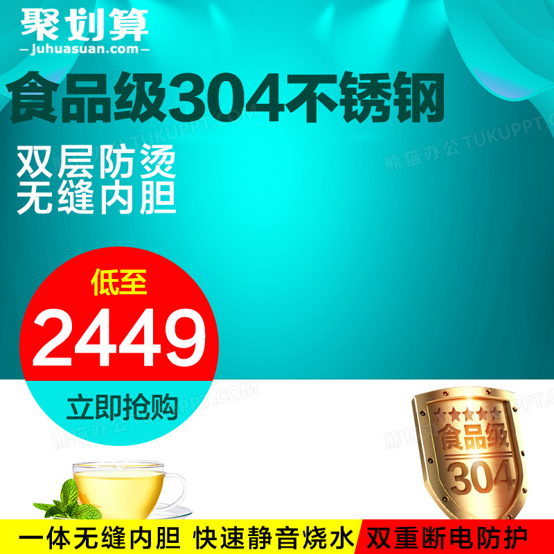 本作品内容为电热水壶绿色主图, 格式为 psd, 图片尺寸为800 x 800, 作品中背景图片无需修改, 源文件无水印,可以直接使用, 欢迎使用熊猫办公。 如认为平台内容涉嫌侵权,可通过邮件:tousu@tukuppt.com提出书面通知,我们将及时处理。