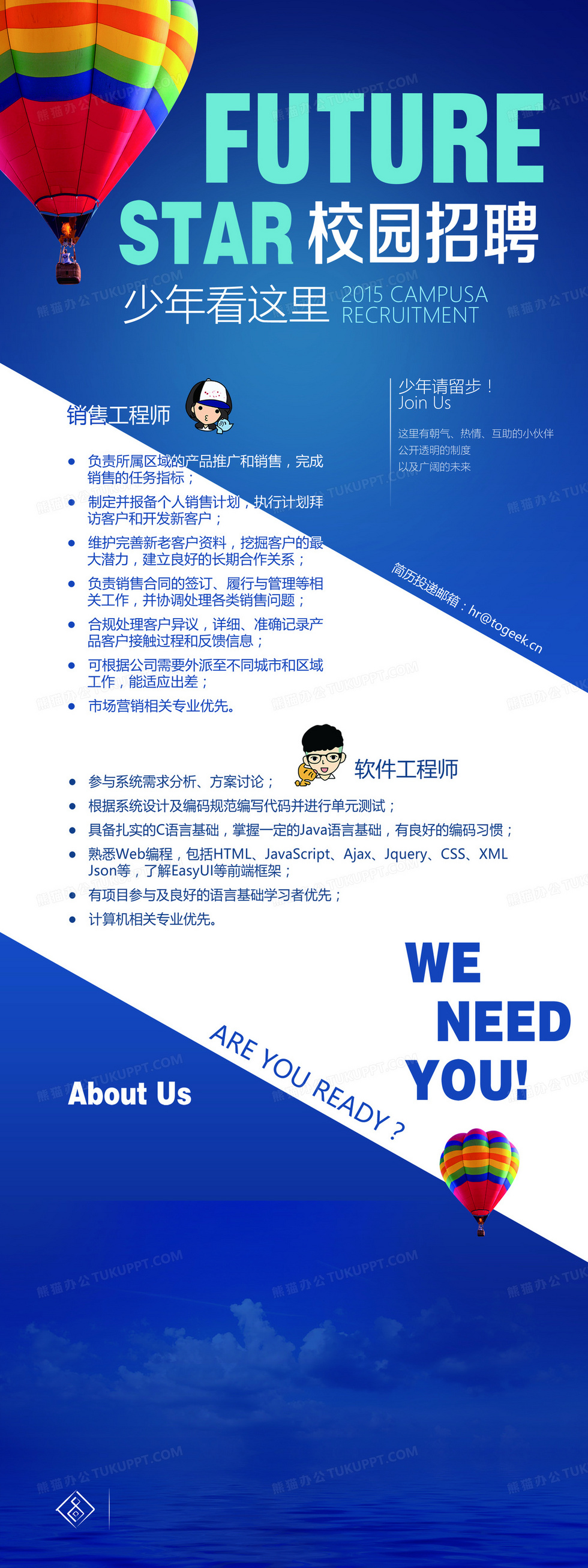 本作品内容为企业招聘海报设计, 格式为 psd, 图片尺寸为2000 x 5332, 作品中背景图片无需修改, 源文件无水印,可以直接使用, 欢迎使用熊猫办公。 如认为平台内容涉嫌侵权,可通过邮件:tousu@tukuppt.com提出书面通知,我们将及时处理。
