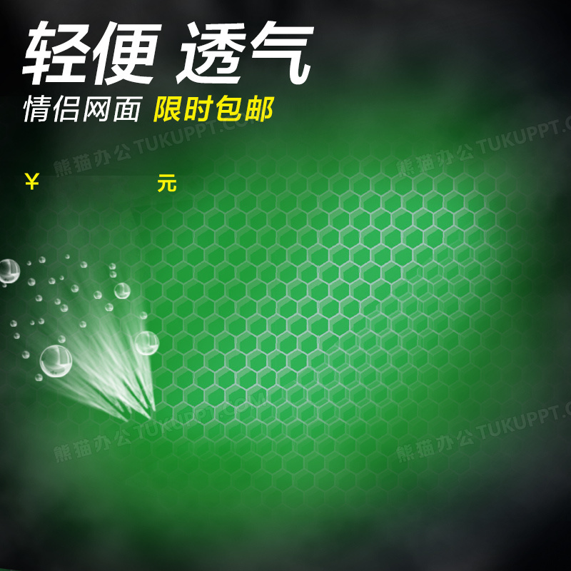 本作品内容为绿色蜂窝渐变鞋子PSD分层主图背景素材, 格式为 psd, 图片尺寸为800 x 800, 作品中背景图片无需修改, 源文件无水印,可以直接使用, 欢迎使用熊猫办公。 如认为平台内容涉嫌侵权,可通过邮件:tousu@tukuppt.com提出书面通知,我们将及时处理。
