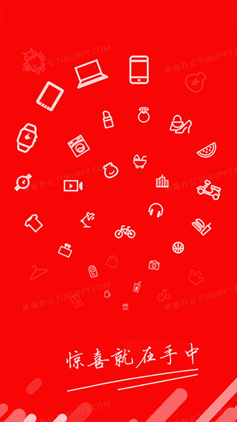 本作品内容为商城类APP闪屏设计, 格式为 jpg, 图片尺寸为1080 x 1920, 作品中背景图片无需修改, 源文件无水印,可以直接使用, 欢迎使用熊猫办公。 如认为平台内容涉嫌侵权,可通过邮件:tousu@tukuppt.com提出书面通知,我们将及时处理。