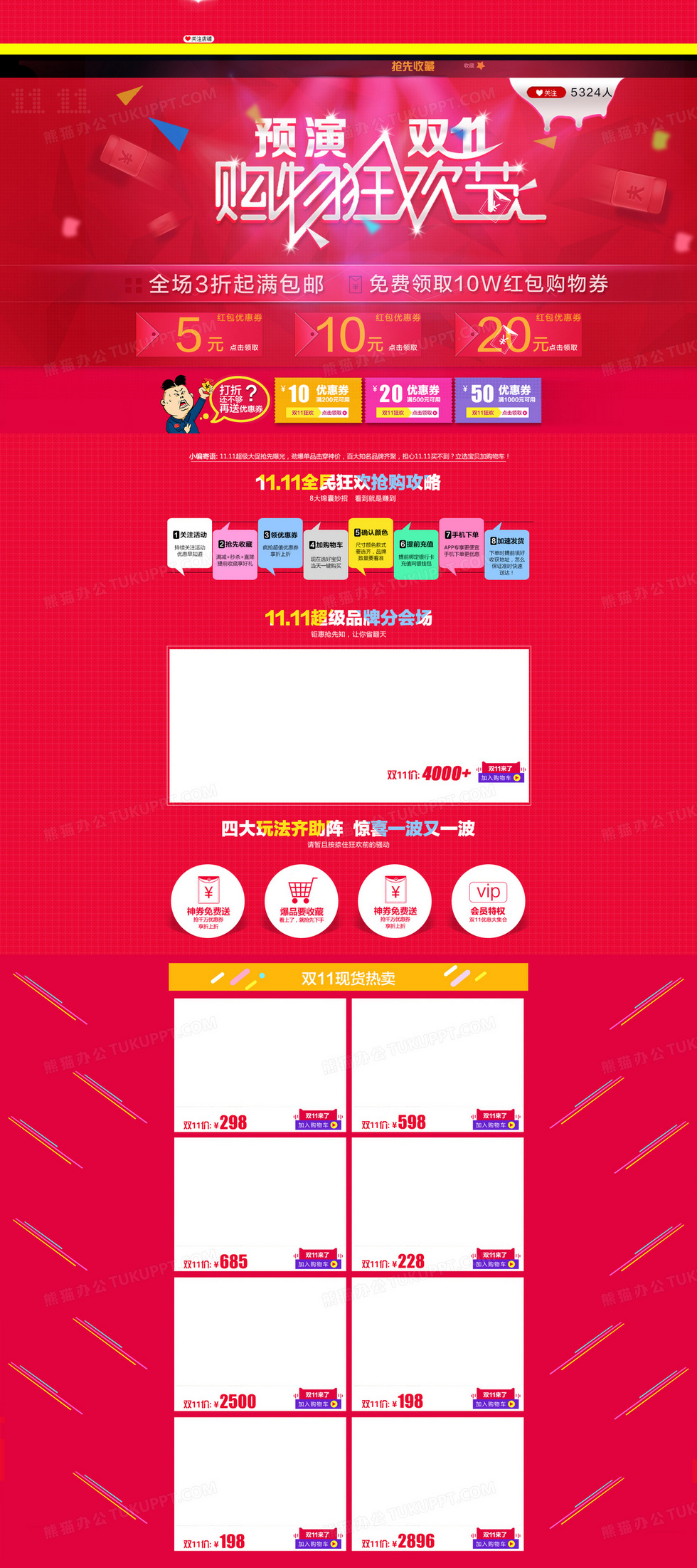本作品内容为双11首页背景, 格式为 psd, 图片尺寸为1920 x 4316, 作品中背景图片无需修改, 源文件无水印,可以直接使用, 欢迎使用熊猫办公。 如认为平台内容涉嫌侵权,可通过邮件:tousu@tukuppt.com提出书面通知,我们将及时处理。