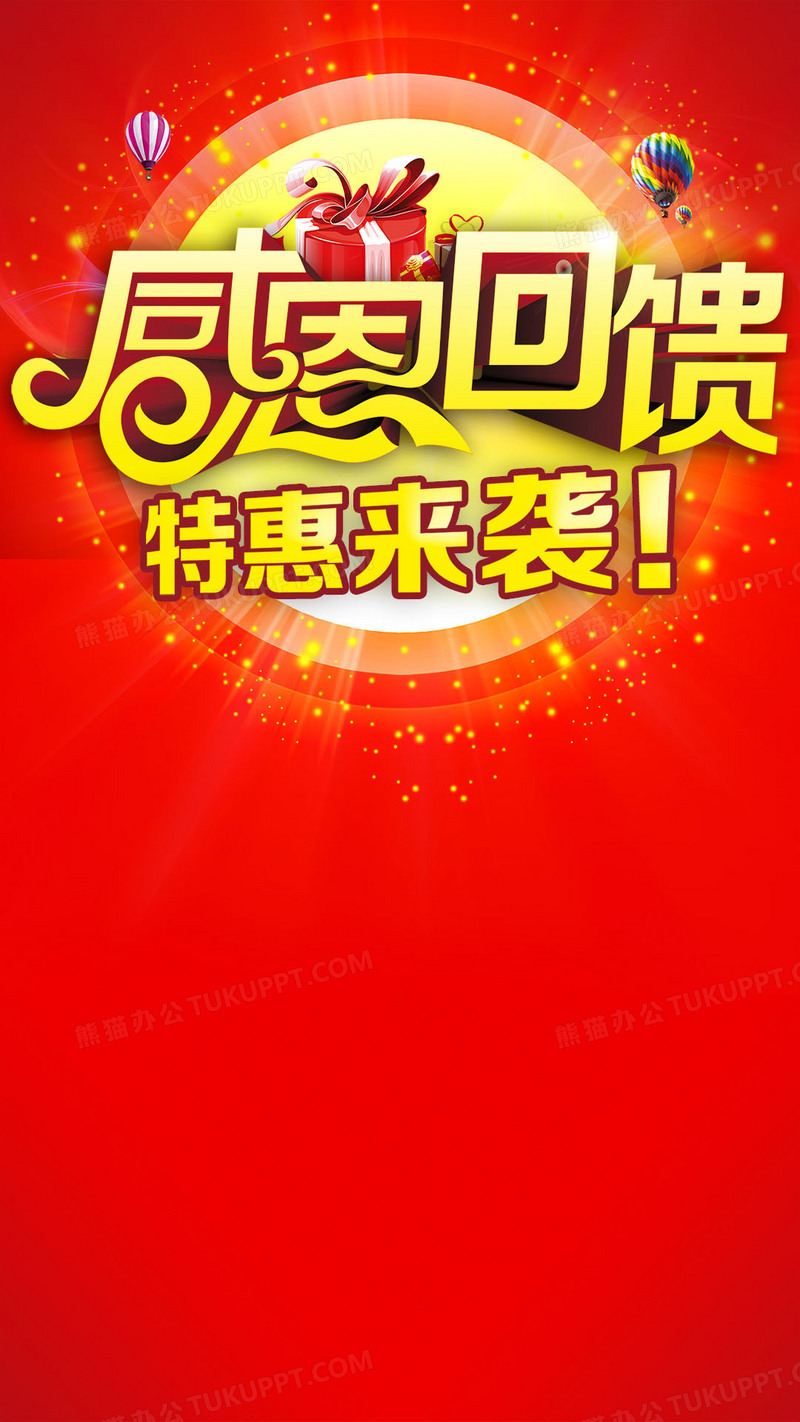 本作品内容为感恩回馈特惠来袭H5背景, 格式为 psd, 图片尺寸为1080 x 1920, 作品中背景图片无需修改, 源文件无水印,可以直接使用, 欢迎使用熊猫办公。 如认为平台内容涉嫌侵权,可通过邮件:tousu@tukuppt.com提出书面通知,我们将及时处理。
