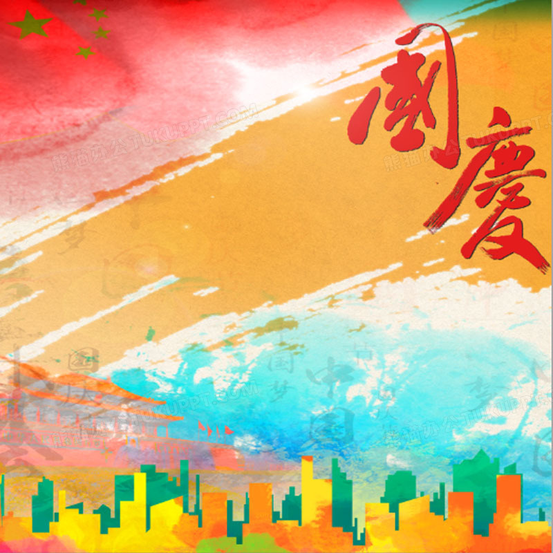 本作品内容为水彩国庆主图, 格式为 psd, 图片尺寸为800 x 800, 作品中背景图片无需修改, 源文件无水印,可以直接使用, 欢迎使用熊猫办公。 如认为平台内容涉嫌侵权,可通过邮件:tousu@tukuppt.com提出书面通知,我们将及时处理。