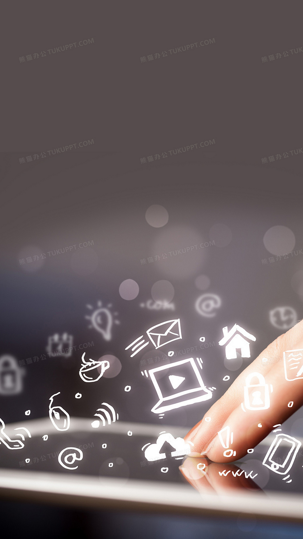 本作品内容为商务手指和手机图标H5背景, 格式为 jpg, 图片尺寸为1242 x 2208, 作品中背景图片无需修改, 源文件无水印,可以直接使用, 欢迎使用熊猫办公。 如认为平台内容涉嫌侵权,可通过邮件:tousu@tukuppt.com提出书面通知,我们将及时处理。