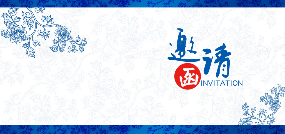 本作品内容为中国风蓝色邀请函海报背景, 格式为 psd, 图片尺寸为1920 x 900, 作品中背景图片无需修改, 源文件无水印,可以直接使用, 欢迎使用熊猫办公。 如认为平台内容涉嫌侵权,可通过邮件:tousu@tukuppt.com提出书面通知,我们将及时处理。