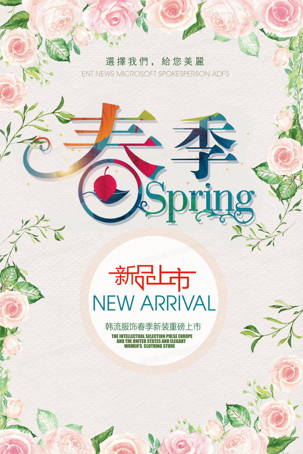 本作品内容为春季服装新品上市背景素材, 格式为 psd, 图片尺寸为2362 x 3543, 作品中背景图片无需修改, 源文件无水印,可以直接使用, 欢迎使用熊猫办公。 如认为平台内容涉嫌侵权,可通过邮件:tousu@tukuppt.com提出书面通知,我们将及时处理。