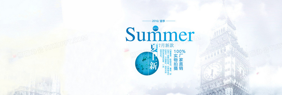 本作品内容为夏上新banner, 格式为 psd, 图片尺寸为1920 x 650, 作品中背景图片无需修改, 源文件无水印,可以直接使用, 欢迎使用熊猫办公。 如认为平台内容涉嫌侵权,可通过邮件:tousu@tukuppt.com提出书面通知,我们将及时处理。