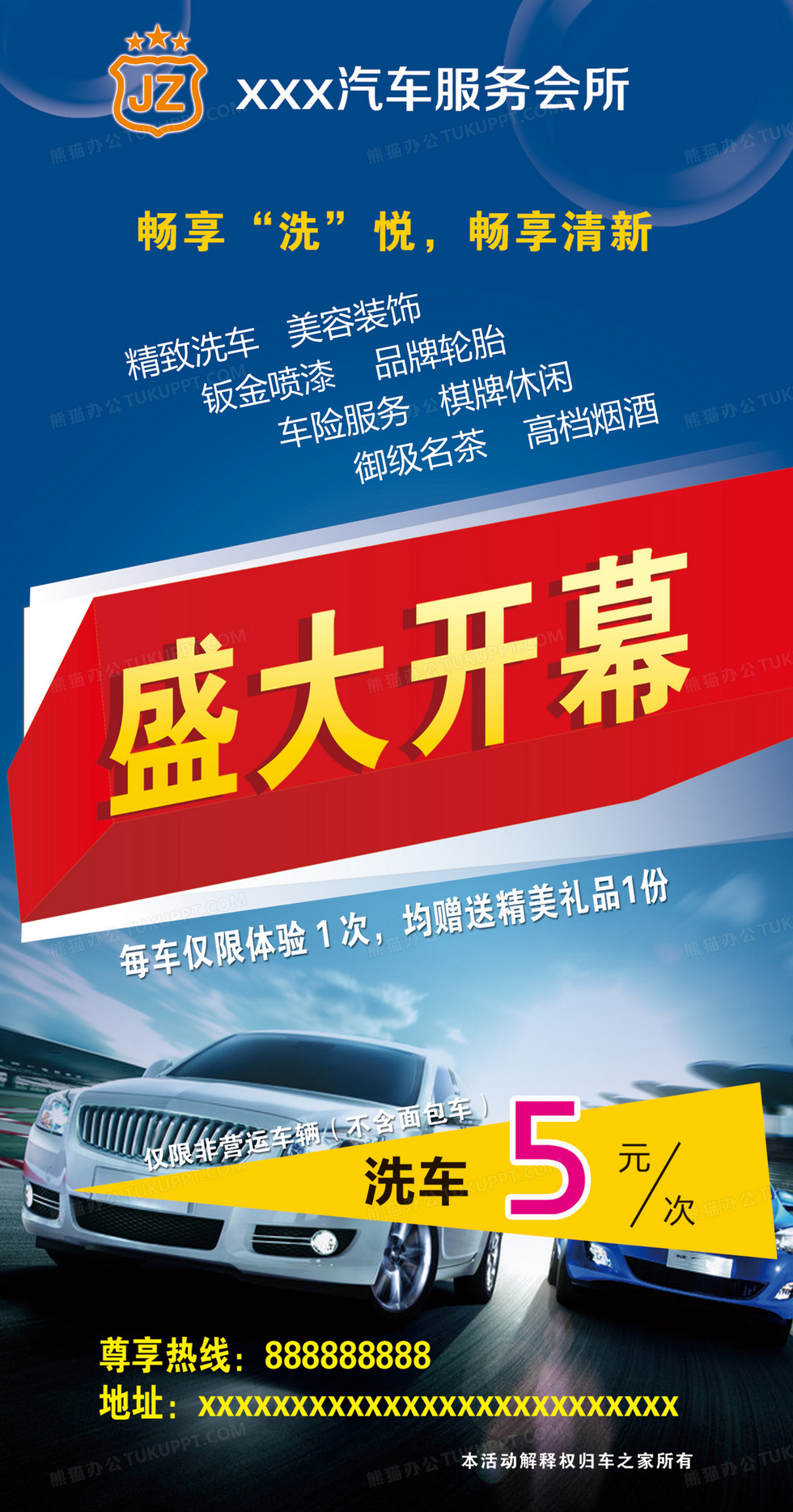 本作品内容为汽车洗车宣传海报背景, 格式为 psd, 图片尺寸为2100 x 4000, 作品中背景图片无需修改, 源文件无水印,可以直接使用, 欢迎使用熊猫办公。 如认为平台内容涉嫌侵权,可通过邮件:tousu@tukuppt.com提出书面通知,我们将及时处理。